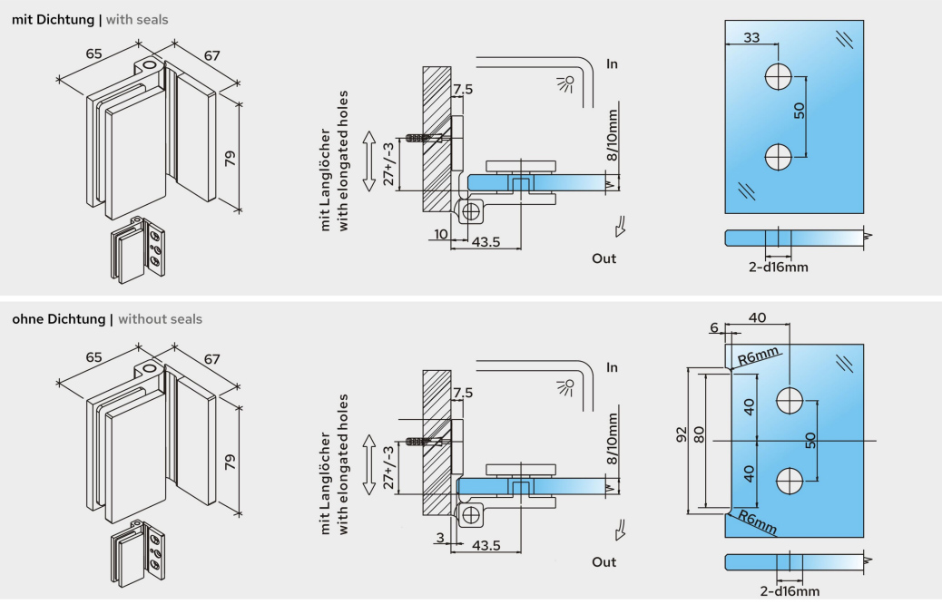 Verwendbar für Glasstärken von 8 - 10 mm