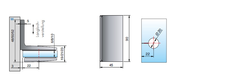Wandplatte mit Langlochverstellung für einfachen Ausgleich bei der Montage, diese werden mit einer Kappe abgedeckt